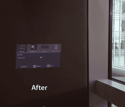 In this image above you can see the projected image has no snow storm effect any more.